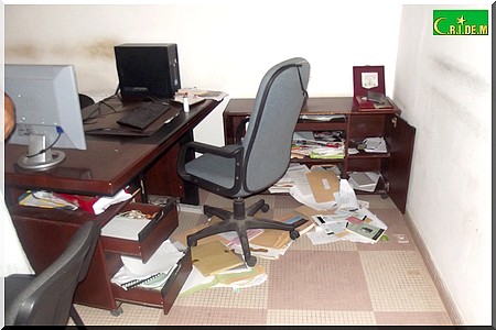 A l’intérieur, les ordinateurs, éteints à la descente des employés du journal, étaient allumés. Les tiroirs du bureau du directeur, Moussa Ould Hamed ont été fouillés et les documents éparpillés. Les tiroirs d’un autre bureau ont connu le même sort. Les responsables de Biladi ont prévenu la police. Les ordinateurs et tout le mobilier des bureaux étaient sur place.