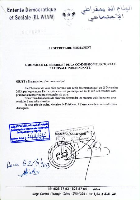 • Dors déjà El wiam déclare avoir remporté l’élection à Rosso (commune et députation) perturbée par les tentatives répétées, avec la complicité des responsable locaux de la CENI, de modifier ses résultats et de conduire, par manipulation des bulletins nuls, à un deuxième tour.