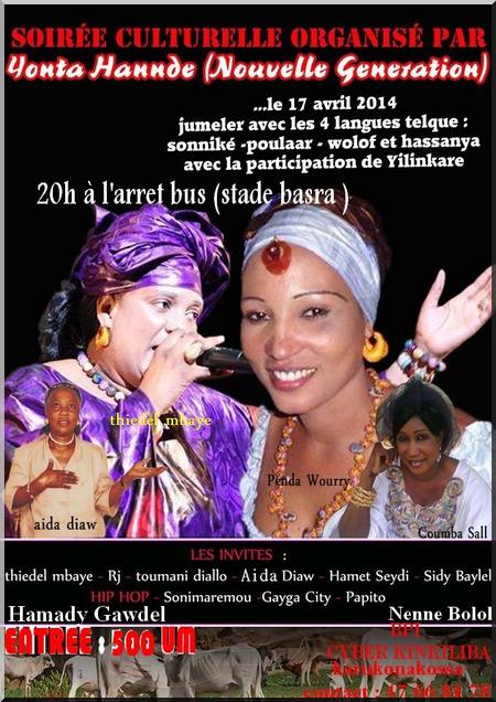 Au menu, il y’aura Mohamed Séyid, Thiédel Mbaye, Coumba Salla, Aida Diaw, Penda Woury. Entre autres artistes, on retrouvera également Toumani Diallo, Sidi Bailel Thiam, Hamady Gawdel Ba et Néné Bollol.