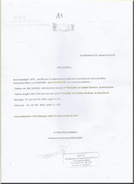 Pour corroborer cela, je déclare que mon affaire a commencé en 2008 lorsque j’ai été recruté par cette société en vertu d’un contrat de travail par l’intermédiaire de la société MPS ; les forfaits et l’injustice ont fait que la société a tenté, par actes de fraude, de me priver de mes droits.