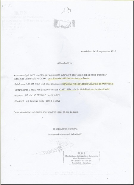 Les fraudes et les escroqueries les plus flagrantes pratiquées par la société et ses partenaires en Mauritanie se traduisent par le fait que celle-ci a pu fabriquer tout et en toutes pièces. De surcroit, elle a ouvert des comptes pour des sociétés et des clients fictifs. Elle persévère dans ses actions frauduleuses pour s’accaparer les droits de ses employés. Elle fait la même chose aux autorités en se dérobant aux impôts et en créant une adresse pour des sociétés fictives ; et aussi par l’ouverture d’un seul N° d’identification fiscale (NIF), d’un même registre commercial, d’un même N° CNSS et d’une même immatriculation d’Impôts pour plusieurs sociétés avec une seule adresse.