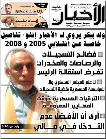 L’ancien chef d’état major de l’armée mauritanienne, Abderrahmane Ould Boubacar, a estimé, dans une interview accordée à l’hebdomadaire Alakhbar Info, que le président Mohamed Ould Abdel Aziz doit démissionner de son poste de chef d’Etat "après l’éclatement du scandale des enregistrements audio précédés par d’autres".