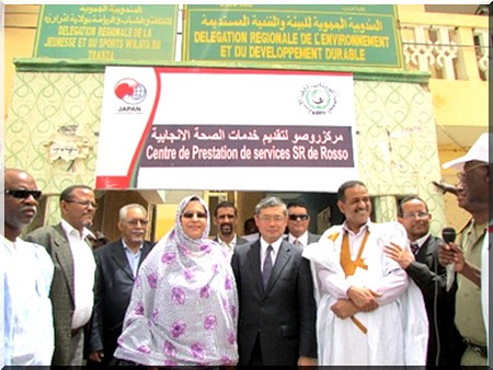 Rosso, le 21 mai 2013, Son Excellence Monsieur Hiroshi Azuma, Ambassadeur du Japon en Mauritanie, sur l’invitation de Madame Mariem Mint Ahmed Aicha, présidente de l’Association Mauritanienne pour la Promotion de la Famille (AMPF), a assisté à la cérémonie de lancement du projet « Réduire l’incidence de la mortalité maternelle et infantile et la prévalence du VIH parmi les populations de Rosso », financé par le gouvernement du Japon via le « Japan Trust Fund pour le VIH/SIDA » de l’IPPF : la Fédération internationale pour le planning familial.