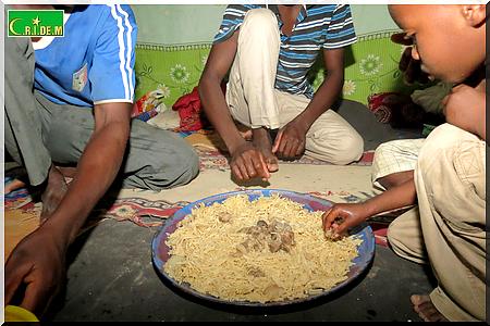 Au menu du repas de ce soir pour la rupture du jeûne, des pâtes. A l’autre bout de la baraque, Mohamed prépare déjà le zrig, et bien sûr les dattes. Dans ses yeux, on lit grandement le plaisir de servir les autres.