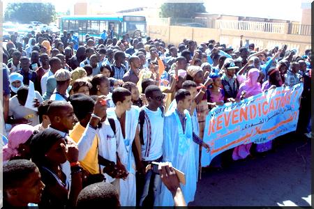 Snem Mauritanie - Ce Mardi 08 Avril 2014, la Coalition des Syndicats Etudiants (UEN, UAEM, ULEM et le SNEM) a marché sur le Ministère de l’Enseignement Supérieur et de la Recherche Scientifique, pour manifester sa colère, son mécontentement face à l’indifférence et la sourde oreille des autorités par rapport à la plateforme revendicative qui leur a été soumise depuis belle lurette.