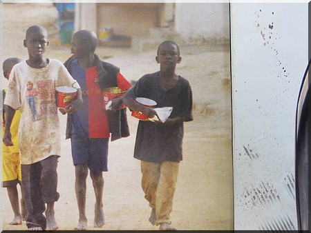 C’est dans la rue que se trouve leur salut gastronomique, après de longues heures passées dans les différentes maisons des quartiers avec tout ce que cela comporte comme risque pour eux. Une mendicité forcée pour les plus jeunes, les plus grands, tout en poursuivant leur cursus scolaire, font plusieurs taches domestiques dans les maisons des « thiernos ».