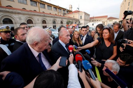 Gérard Collomb s'est immédiatement rendu à Marseille après l'attentat, où il est arrivé en fin d'après-midi. Le ministre de l'Intérieur s'est brièvement exprimé face à la presse, admettant que « cet acte pourrait être de nature terroriste » mais que « à cette heure, il n'est pas possible de le confirmer ». Le maire de Marseille, Jean-Claude Gaudin (LR), présent lors de ce point presse, a pour sa part affirmé qu'il ne doutait pas de la nature terroriste de l'attaque.