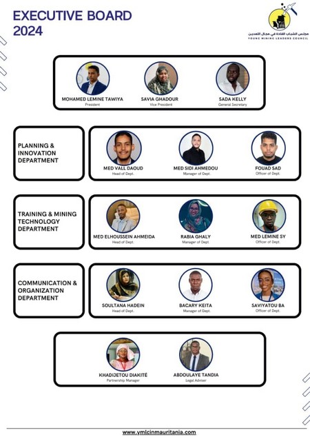 Taqadomy - La composition du nouveau Bureau Exécutif du Conseil des Jeunes Leaders Miniers (Young Mining Leaders Council YMLC) vient d’être annoncée ce mercredi 27 mars 2024.