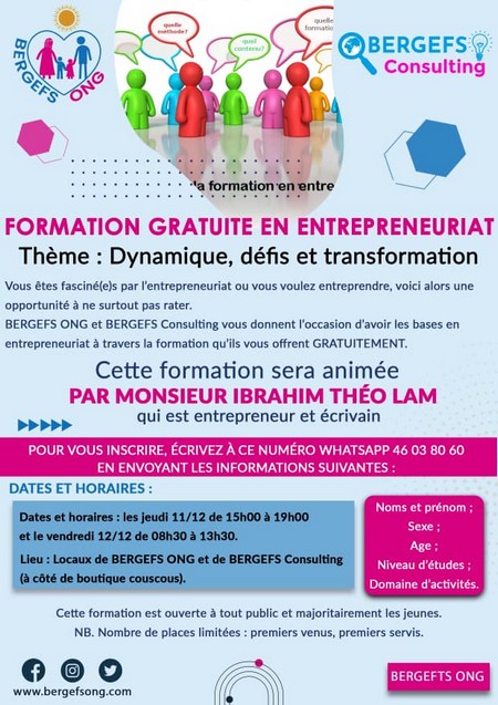 FORMATION GRATUITE EN ENTREPRENEURIAT : « DYNAMIQUE, DÉFIS ET TRANSFORMATION »