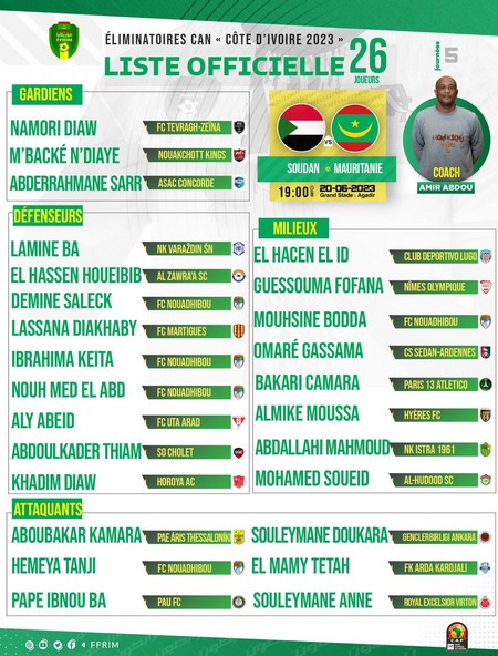 Logée dans le groupe I en compagnie du Gabon, du Soudan et de RD Congo, la Mauritanie est en lutte pour une place à la CAN 2023.